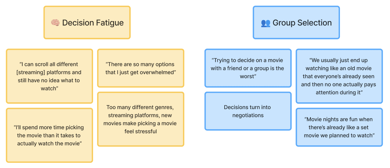 I conducted three interviews to understand how people choose movies alone and in group settings.