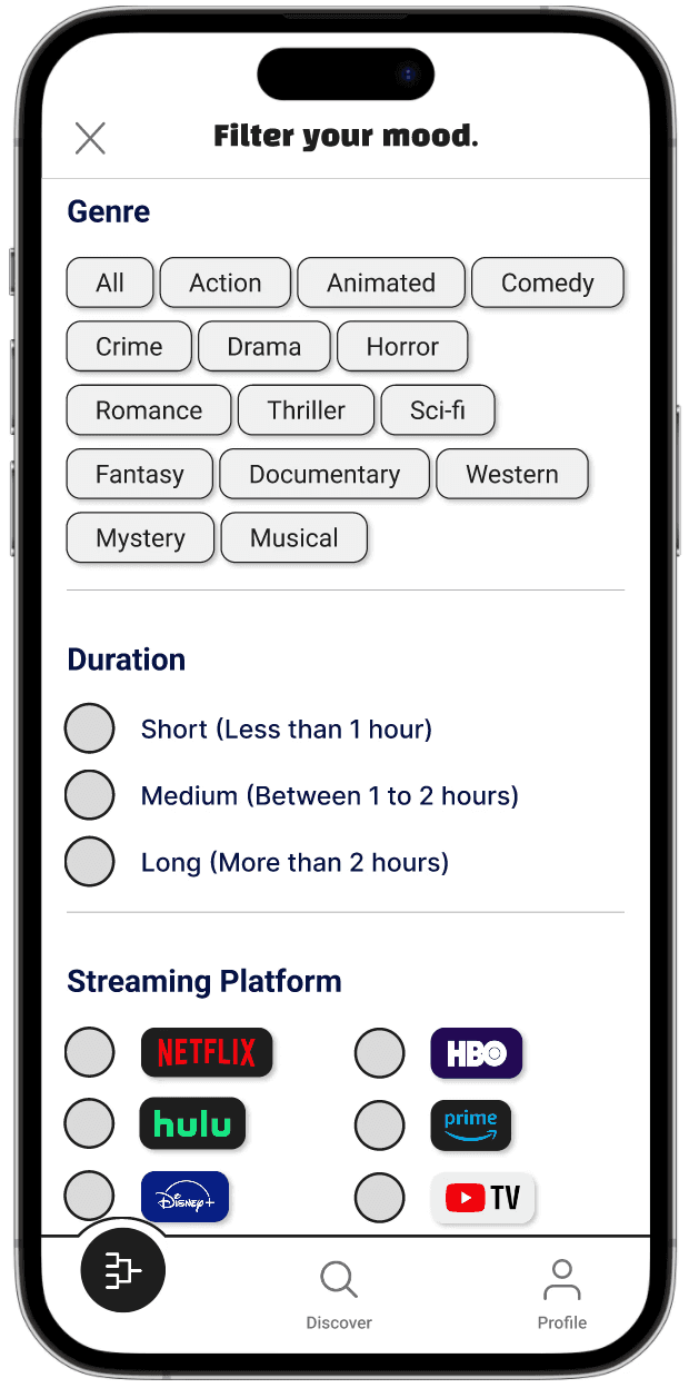 Design a digital product that helps users confidently choose a movie without overwhelming them with options.