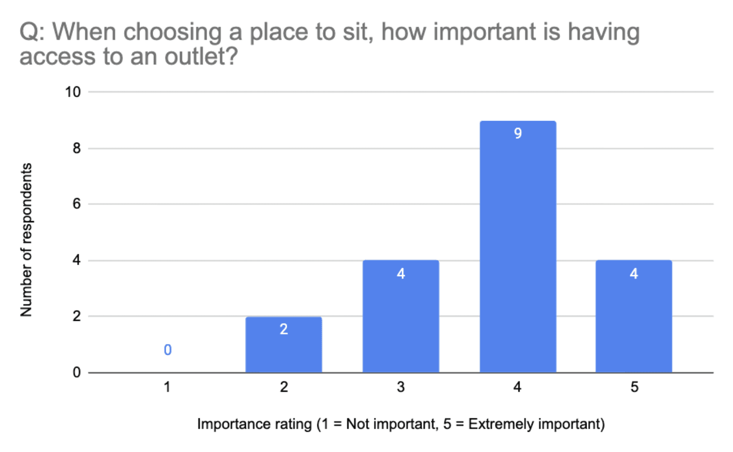 Students rated outlet access as one of the most important factors when choosing where to sit