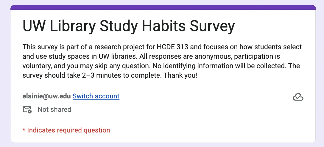 To understand why these observed behaviors were happening, I conducted semi-structured interviews with UW students who study in campus libraries regularly. These interviews explored: