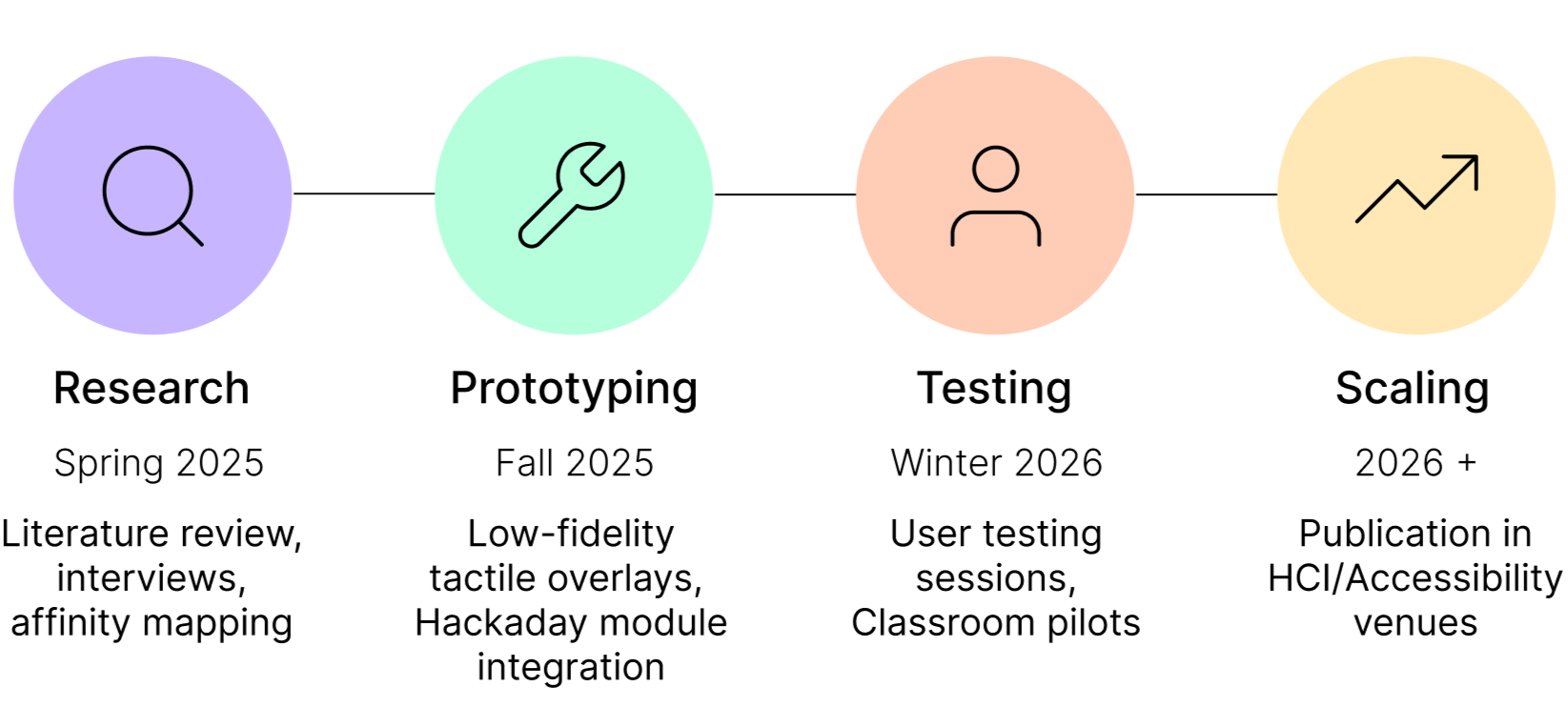 I serve as a UX Researcher for a project addressing the inaccessibility of STEM classrooms for blind and low-vision students, turning user needs into actionable insights that guide engineering prototypes.